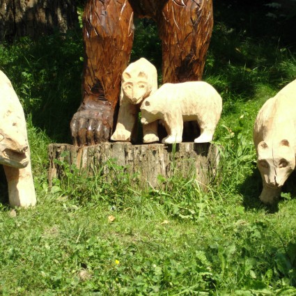 Ferienhaus Dörfer können Sie mit einer Bärenfamilie oder einer der Mutterschafe zu begrüßen, mit einem stolzen Adler oder einen fantastischen Charakter, liebevoll geschnitzten Holz höchste Qualität und geben Raum Persönlichkeit und Einzigartigkeit.