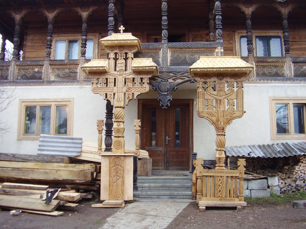 Other works sculpted by craftsman Teodor Barsan: Maramures gates, carved crucifixes, crosses carved, filegorii, carved icons, carved iconostasis, carved pillars, houses, wooden altars, carved ornaments