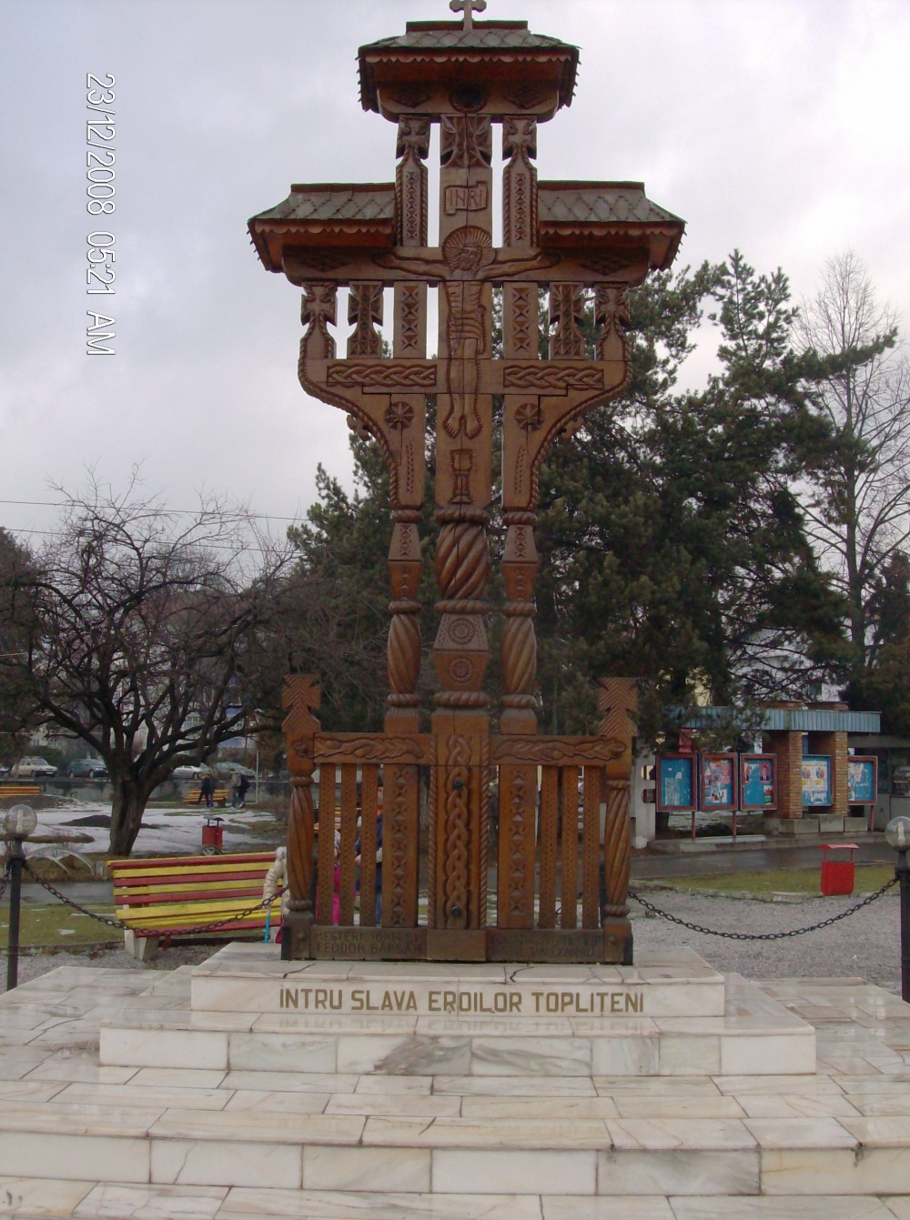 - The biggest model is the one with 3 pillars and 3 roofs, with a main pole, and two lateral ones and three roofs. Other works carved by the craftsman Teodor Barsan: gates of Maramures, carved crucifixes, carved crosses, gazebo, carved icons, carved altarpieces, carved pillars, wooden houses, wooden altar, carved ornaments.
