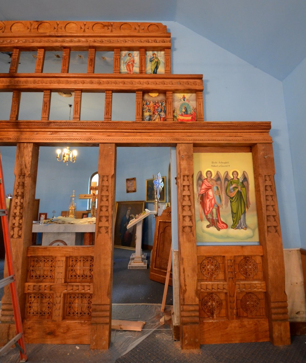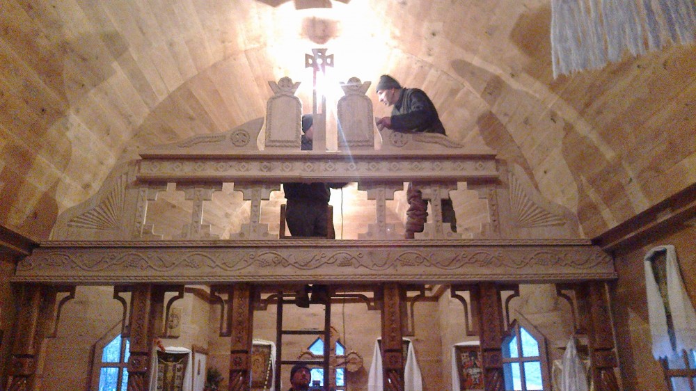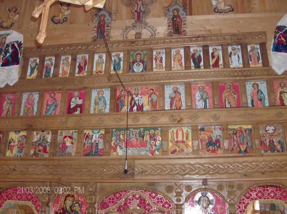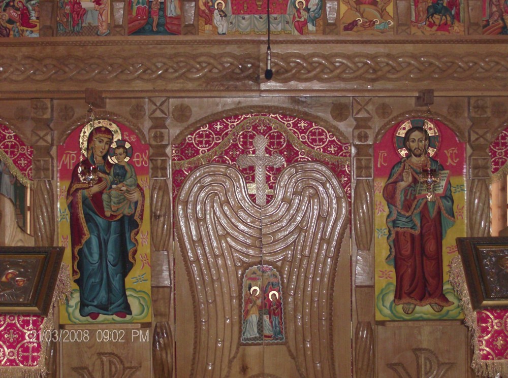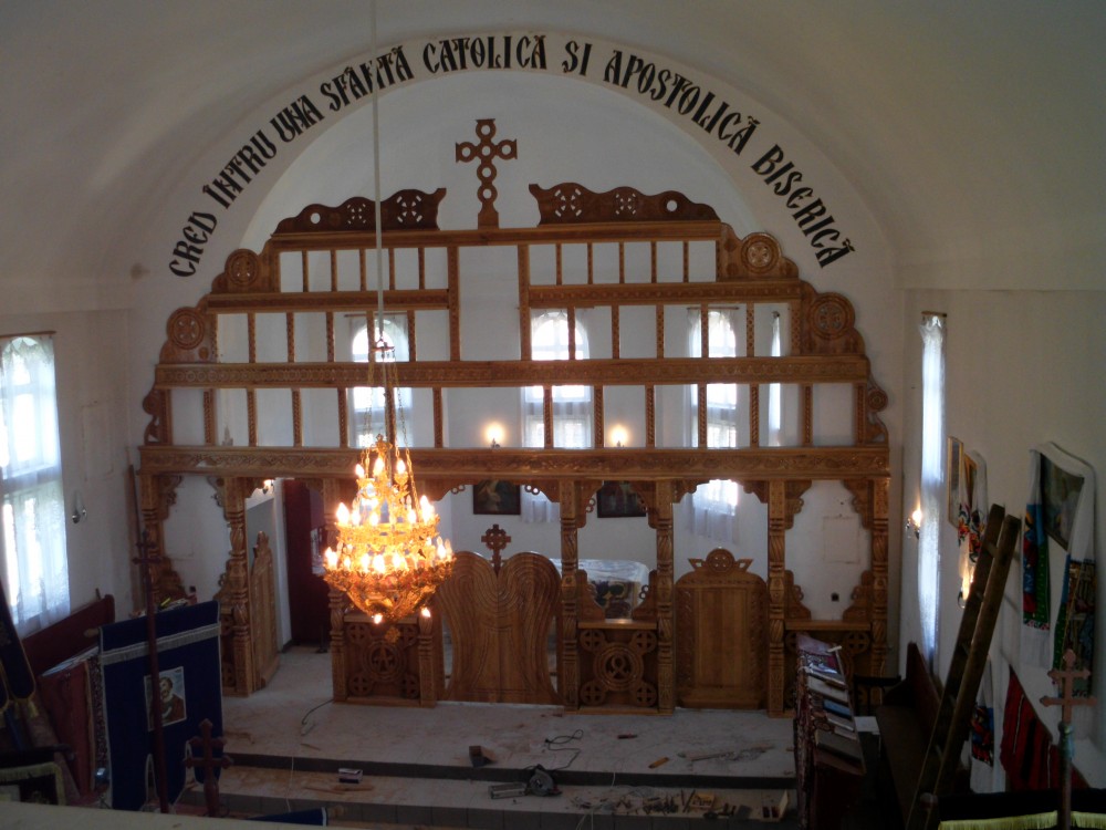 The iconostasis must comply with the structure and design: in the middle are the imperial doors, followed by the Deacon`s doors, and above are spaces for three or more rows with icons, and the cross in the middle framed by other two icons. The most common models are the iconostases which have a very complex sculpture, loaded with many vegetal-stylized floral motifs representations. It is worth mentioning that the sculpture on the iconostasis is done mainly through professional machines, which make them fit in the type series. Although in the finishing chisels are used, the iconostasis are very similar to each other. A major limitation of these types of iconostasis is the lack of adaptability to space of the church, sometimes necessary handmade additions spoil the look of the work unit. In contrast to the above, we bring creativity and originality combined with canonical requirements. Although some equipment is needed for the preparation of the materials, the sculpture is entirely manual. In terms of structure iconostases have many dimensions: the ones for the cathedral, much higher, the churches and the small chapel.