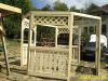 Foundation for such a summer altar is made of concrete clad with river stones, which gives naturalness and durability of construction.